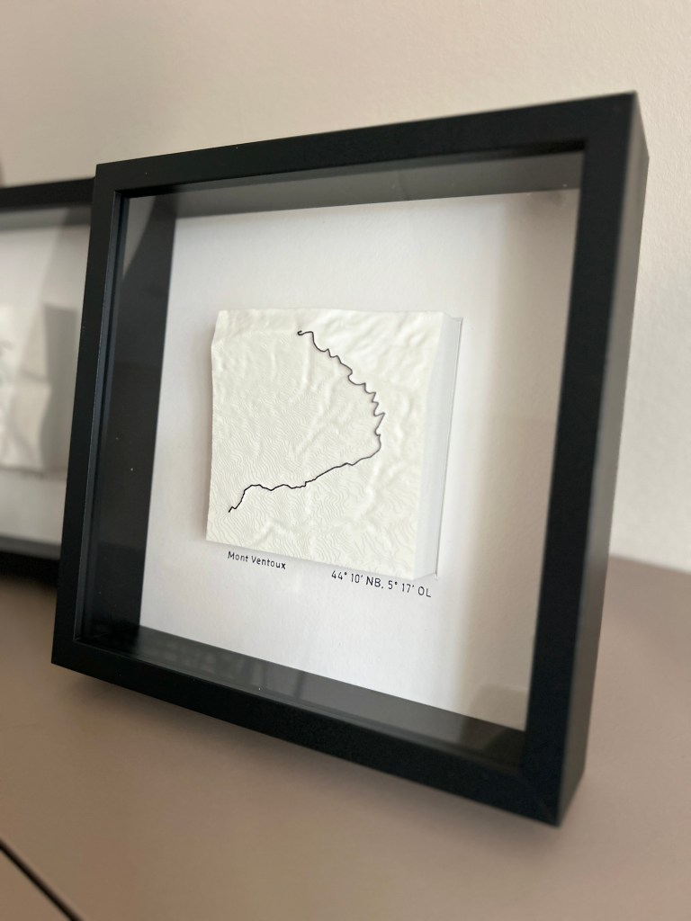 Deze 3D-print vangt de unieke uitstraling van de Mont Ventoux, de iconische “Kale Berg” uit de wielersport. Het reliëf, de steile hellingen en het karakteristieke kale topgebied zijn nauwkeurig weergegeven, waardoor het model een realistisch en tastbaar beeld geeft van deze legendarische klim. Elk detail, van de kronkelende wegen tot de dramatische hoogteverschillen, is zorgvuldig vormgegeven. Het resultaat is een harmonieus samenspel van precisie en esthetiek, ideaal voor liefhebbers van landschappen, sport en unieke verzamelobjecten.